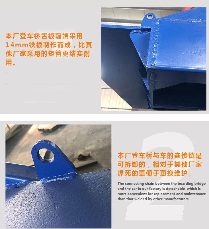 二、可調節(jié)長度的索鏈能方便地鉤住貨車,使登車橋與貨車始終緊密貼合。